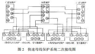 具體接線(xiàn)見(jiàn)快速母線(xiàn)槽保護(hù)系統(tǒng)二次接線(xiàn)圖(圖2)。