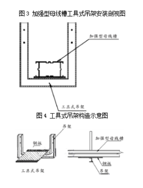 (2)選用的吊架可重復(fù)利用的附加有鋼板的吊架裝置固定母線槽,加寬了吊架與母線槽的觸摸面積,可增加吊架的裝置距離,削減母線槽接頭數(shù)量,削減材料的用量。