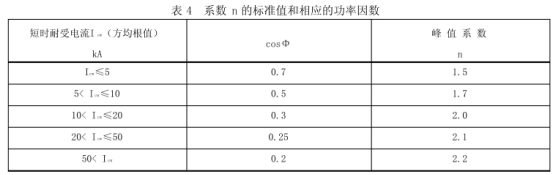 母線槽的額外峰值耐受電流是指在規(guī)矩的實(shí)驗(yàn)條件下,母線槽能耐受的電流峰值。其值為表5.4中的短時(shí)耐受電流(方均根值)與系數(shù)n的乘積。