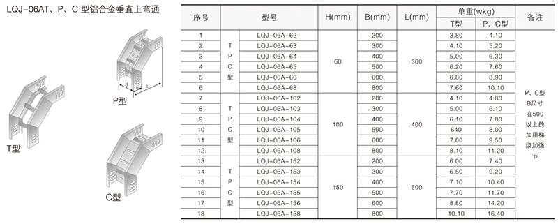 鋁合金電纜橋架在某種結(jié)構(gòu)形式中無(wú)其它結(jié)構(gòu)形式中的某-種產(chǎn)品類別,選型可作代用表示。例如:在LQU-CC型槽式鋁合金電纜橋架結(jié)構(gòu)形式中,無(wú)鋁合金配線橋架中的LPC-03D, 即表示為LFC-CC-03D。